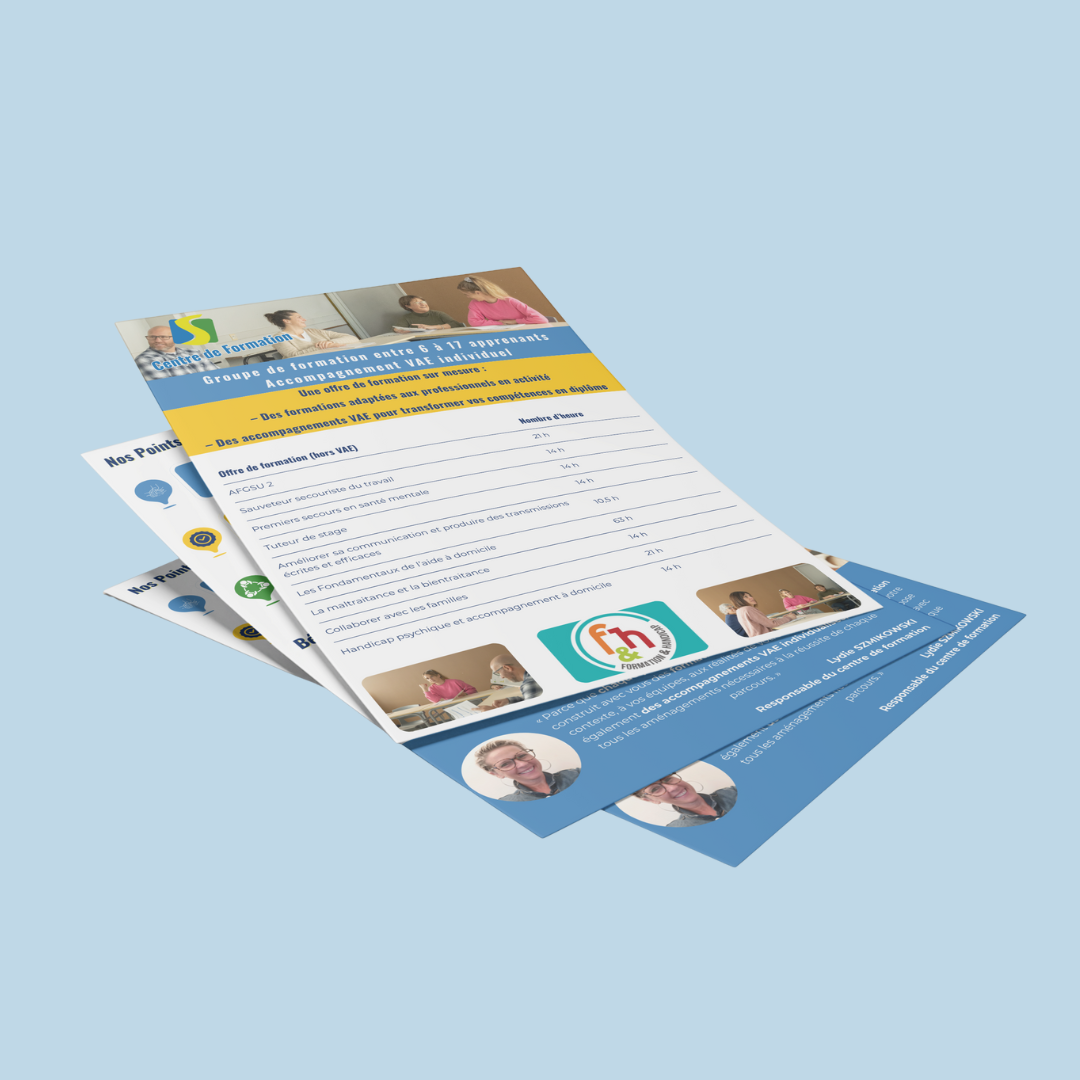 Dans un premier temps, nous avons travaillé les supports de communication destinés aux salons et aux journées portes ouvertes, avec l’objectif de proposer des documents clairs, cohérents et représentatifs de l’établissement.